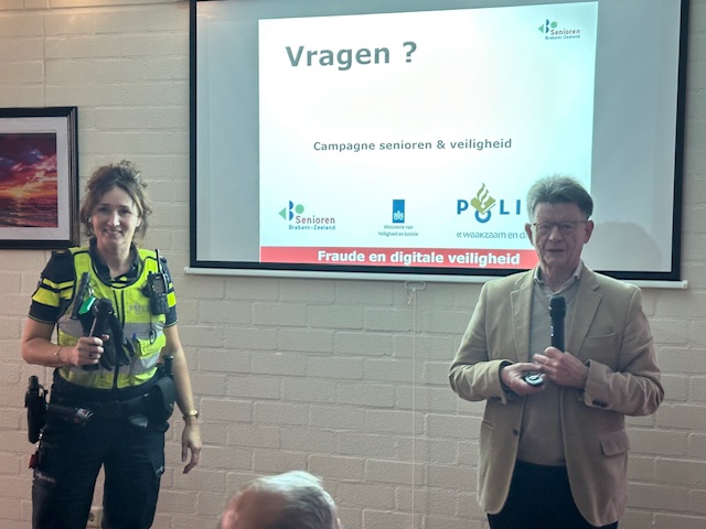Vrijdagmiddag 14 november verzorgden Hein van Lent namens Senioren Brabant Zeeland en Viola Bliek, wijkagent in Stratum, een heel informatieve bijeenkomst over veiligheid en (digitale) fraude.